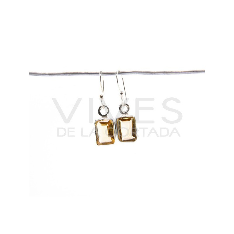 Pequenos Brincos Facetados de Citrino em Cubo - 925 Sterling Silver