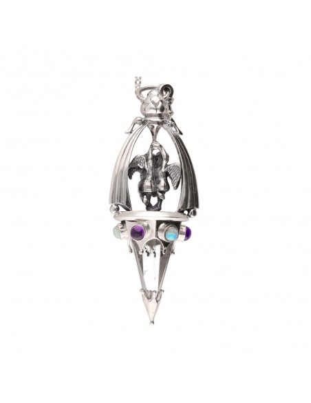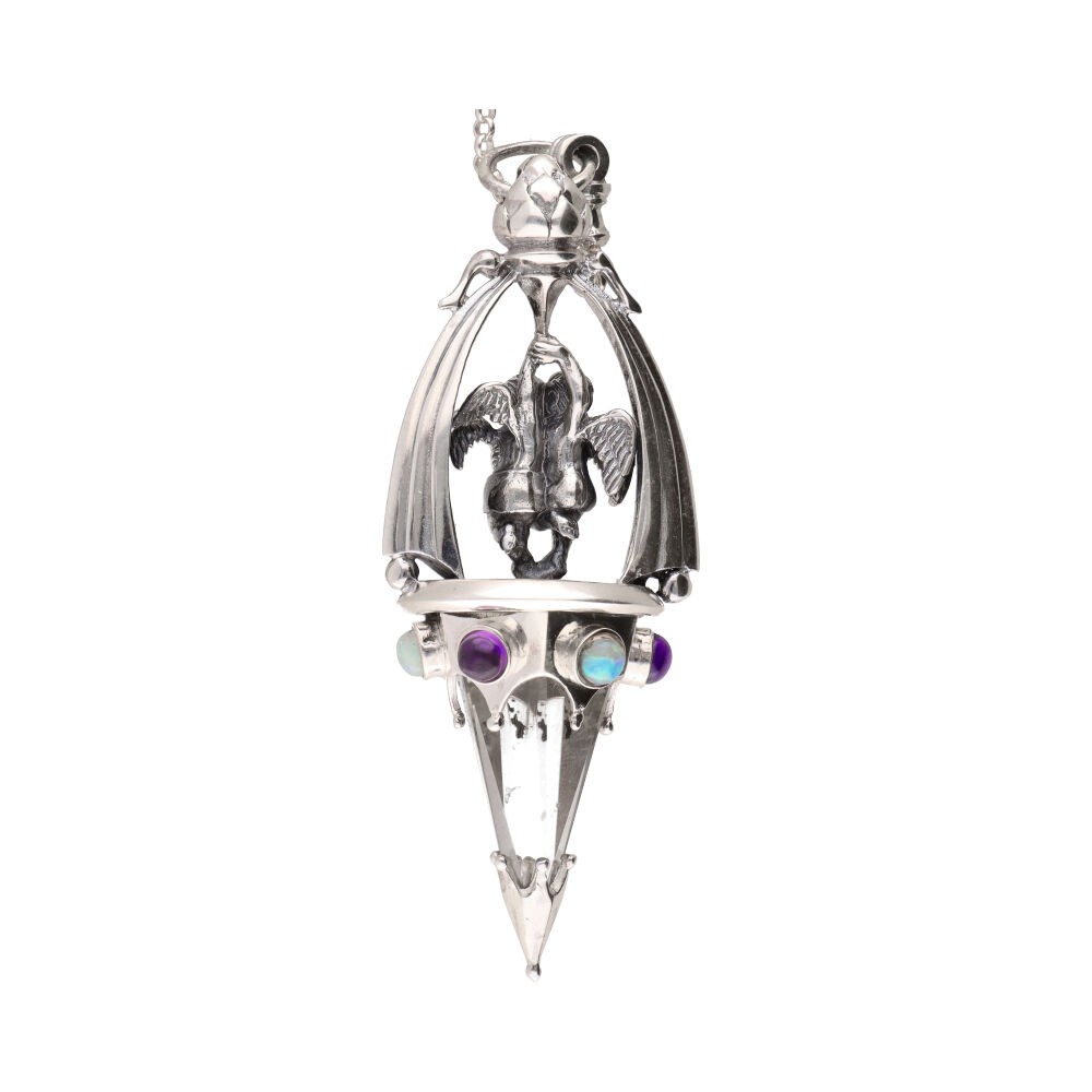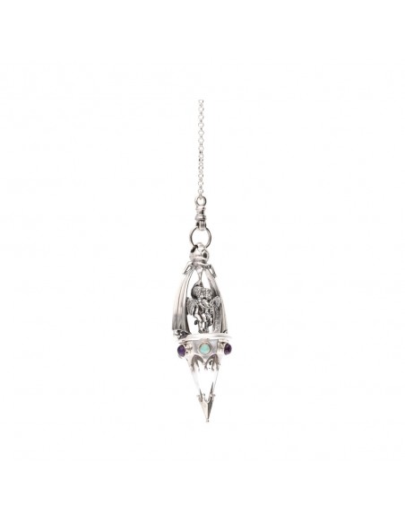 Pêndulo 60cm Anjos de Gotland com Opala e Ametista em Prata de Lei 925