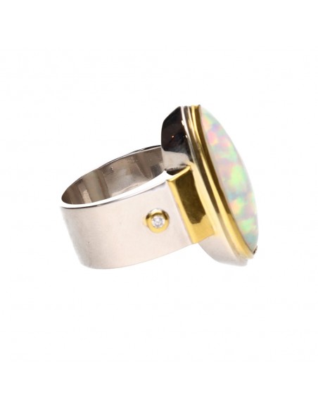 Anel Opala com Diamantes Prata de Lei 925 (35J)