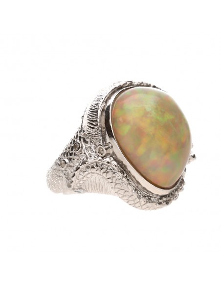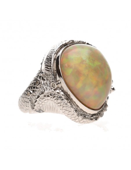 Anel Opala com Diamantes Prata de Lei 925 (41J)