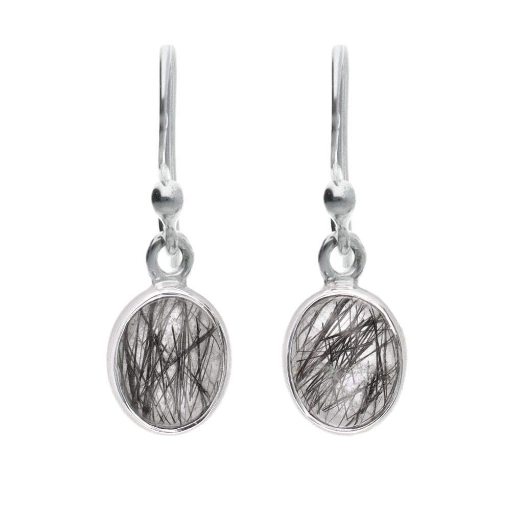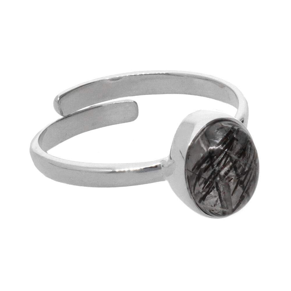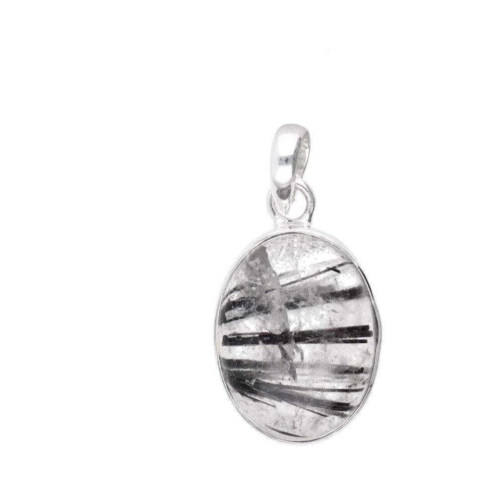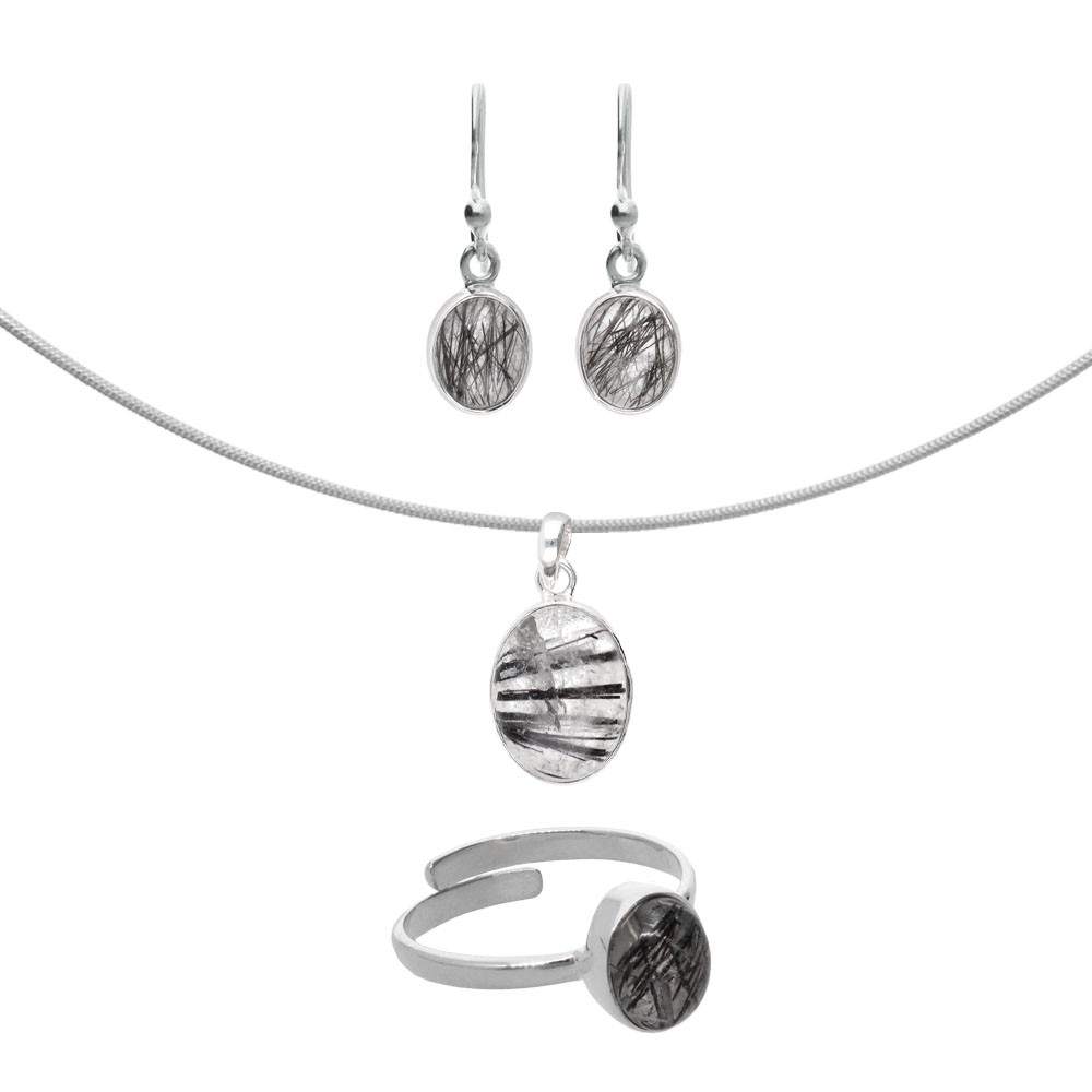 Conjunto oval de quartzo de turmalina em Sterling Silver 925