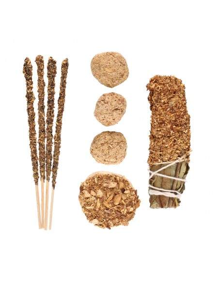 conteúdo: 4 incensários de palo santo 1 pastilha de palo santo 3 bombitas de palo santo 1 fumo de palo santo Kit de purificação: devido ao seu grande poder e energia purificadora, escolhemos o Palo Santo como meio de limpeza espiritual profunda. Além disso, gera auras de luz e amor nas salas onde o seu fumo protetor é utilizado