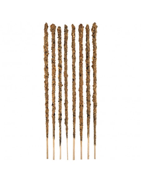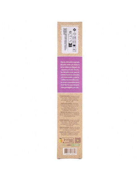 Composição: Madeira de Palo santo (Peru), concentrado de óleo aromático, carvão vegetal, biomassa de frutos, aglutinante natural e sal.