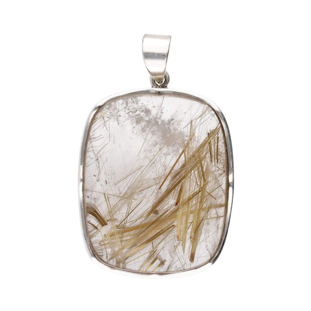 Pingente de quartzo rutilado em prata de lei 925 (X81)