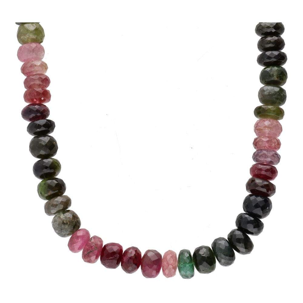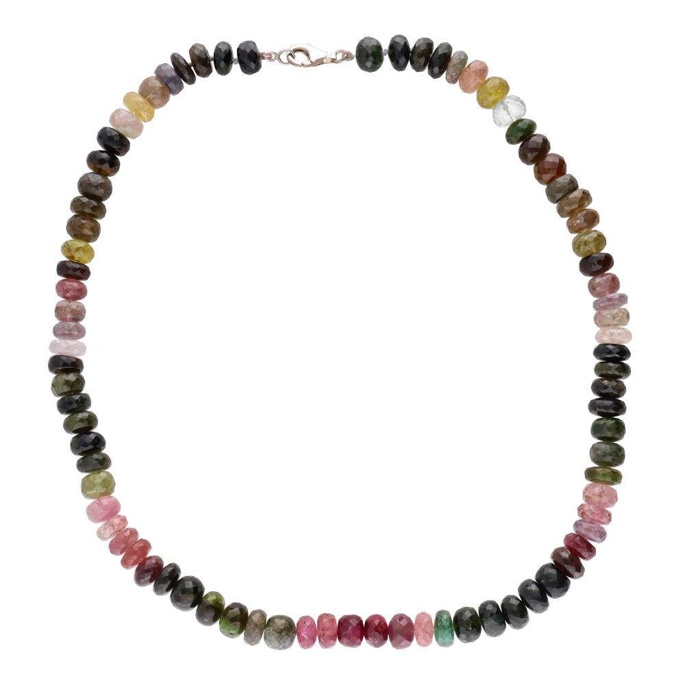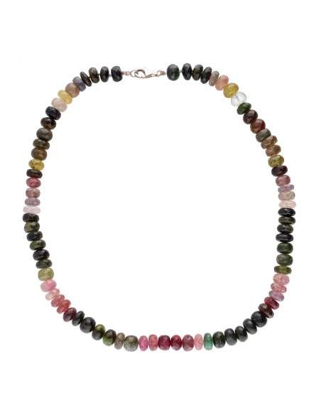 Colar de turmalina multicolorido em prata esterlina 925 (42A)