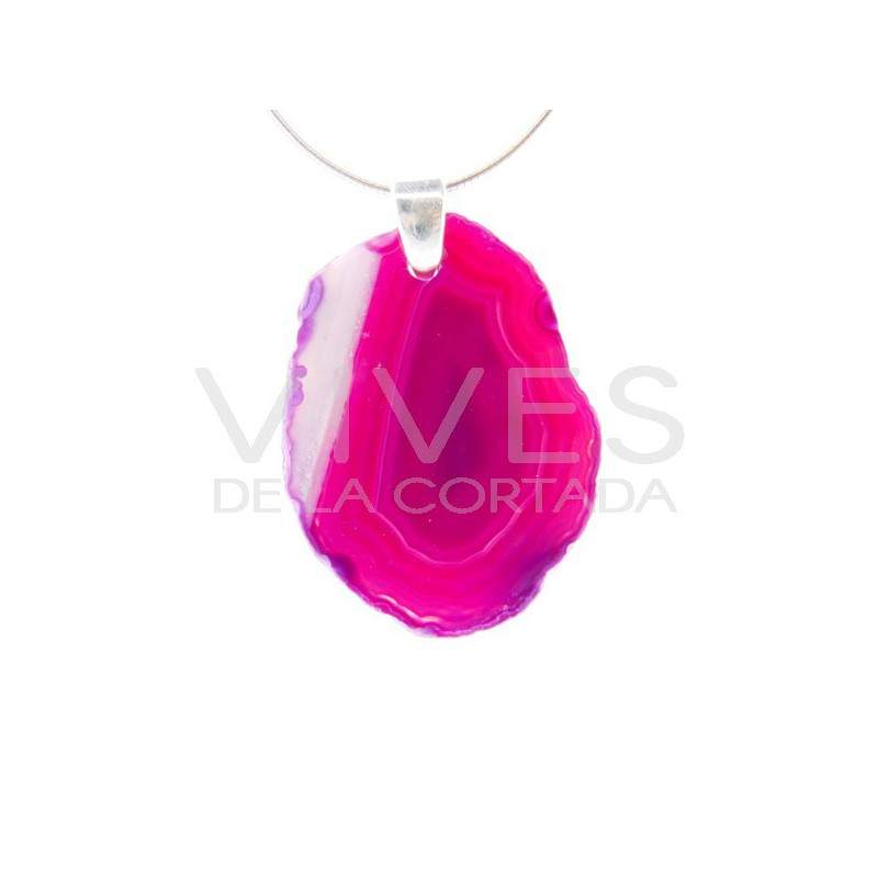 Colgante de Ágata Teñida de Fucsia - Baño de Plata