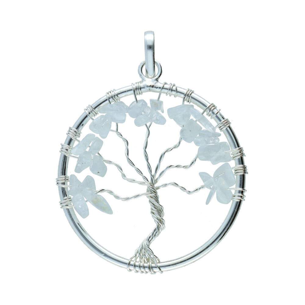 Pendente Árvore da Vida com Pedra da Lua com banho de prata