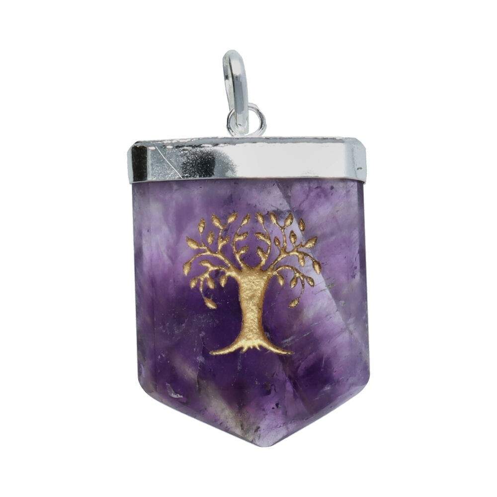Pingente de folha de calcedónia cristalizada em bruto com banho de prata