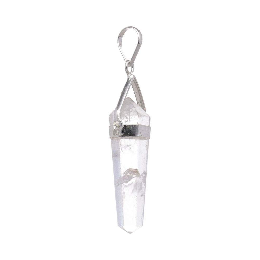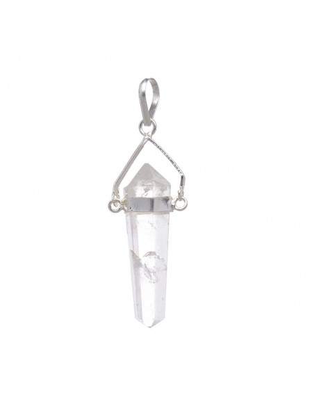 Pingente de quartzo Branco biterminado em Banho De Prata