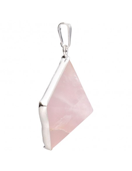 Pingente de pirâmide de quartzo rosa com grampos - Banho de Prata