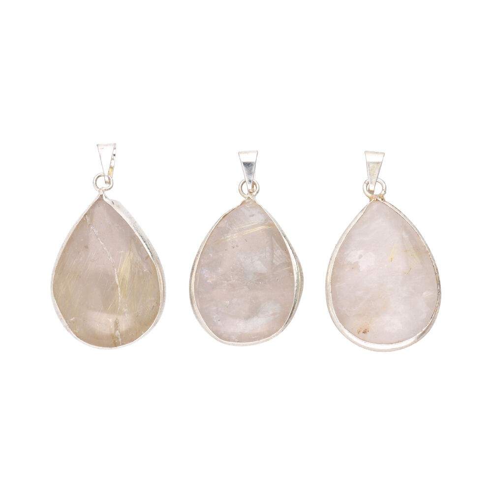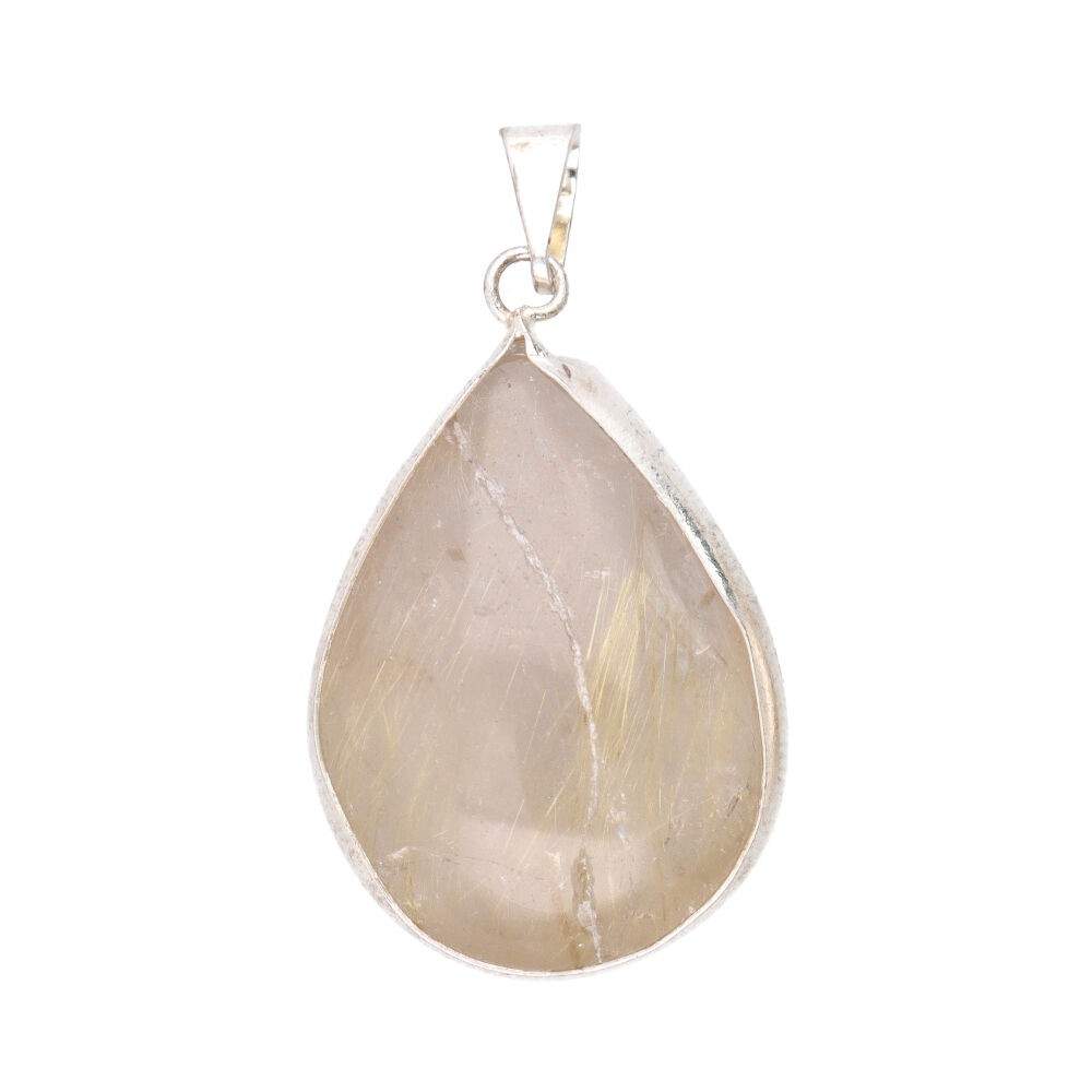 Pingente de Gota de quartzo rutilado em Banho De Prata