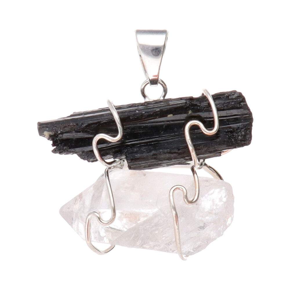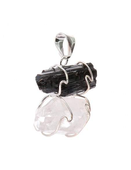 Pendente Turmalina com Drusa de Quartzo com banho de prata