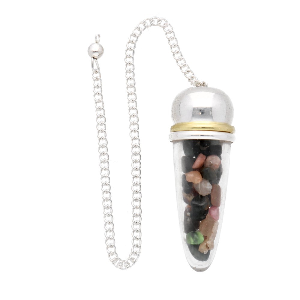 Pêndulo de gota de turmalina multicolorida com resina e testemunha metálica