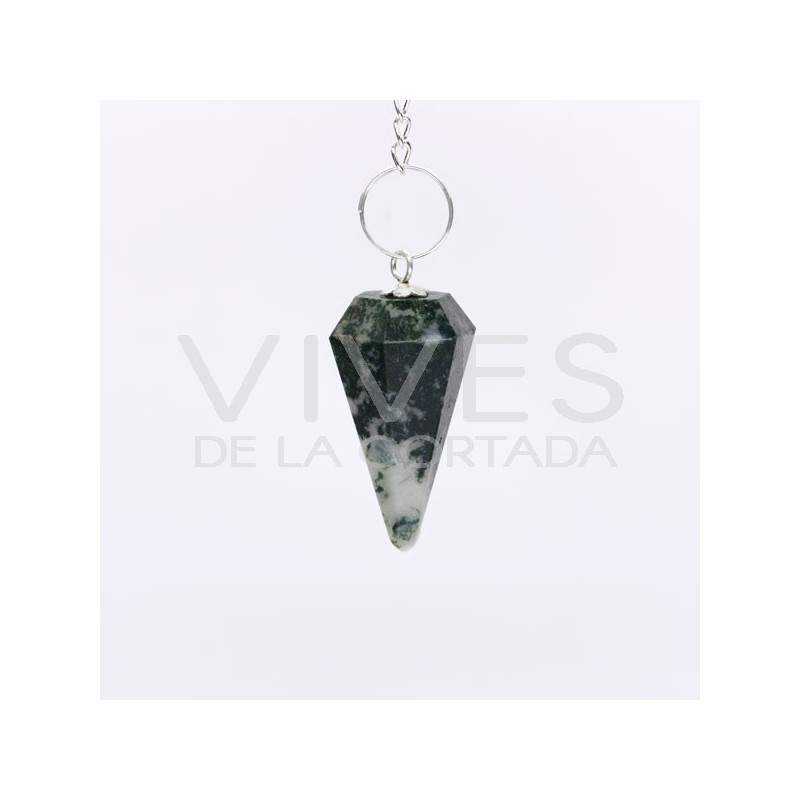 Mossy ágata é uma variedade microcristalino do grupo quartzo, um tipo de chalcedony. Existem muitos tipos de ágatas, sua cor depende dos diferentes materiais que podem conter. Os mais abundantes são o cinza, embora também os encontremos em amarelo, laranja, branco, azul e marrom. Mossy ágata é um tipo de ágata que não tem bandas, caracteriza-se por suas inclusões de clorato verde, óxido de ferro e manganês, que lembra plantas ou musgos. No estado natural, ágata geralmente se forma dentro de cavidades de rochas vulcânicas.