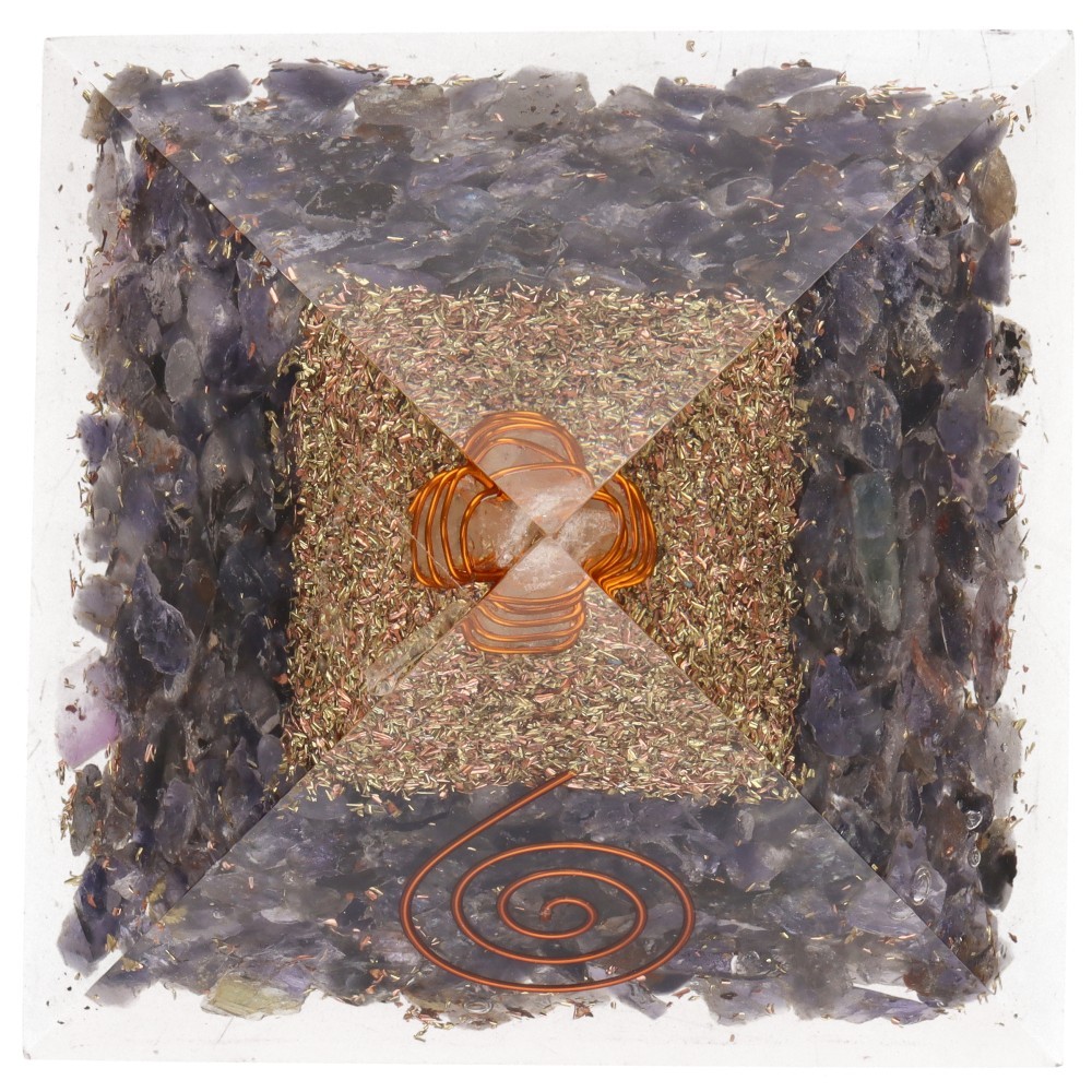 Pirâmide de Iolite em resina com espiral 7x7cm