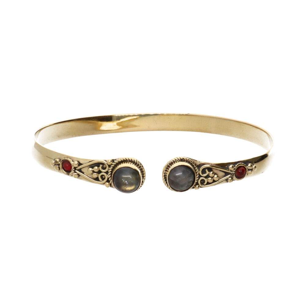 Pulseira de bronze com labradorite vermelho duplo -25-