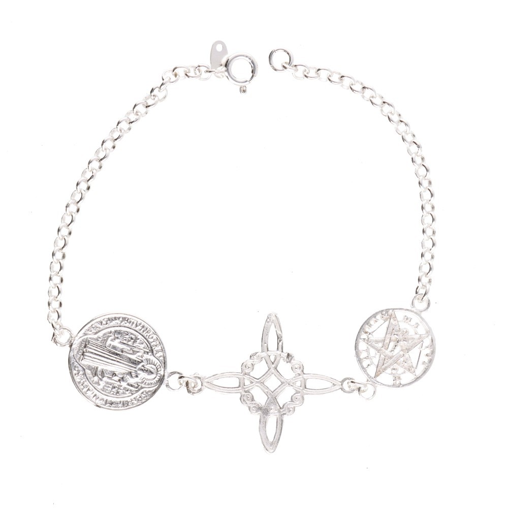 Dimensões aproximadas do símbolo: Nó: 2 x 2cm, Tetragramaton: 1,4 x 1.4cm, São Bento: 1,5 x 1.5cm