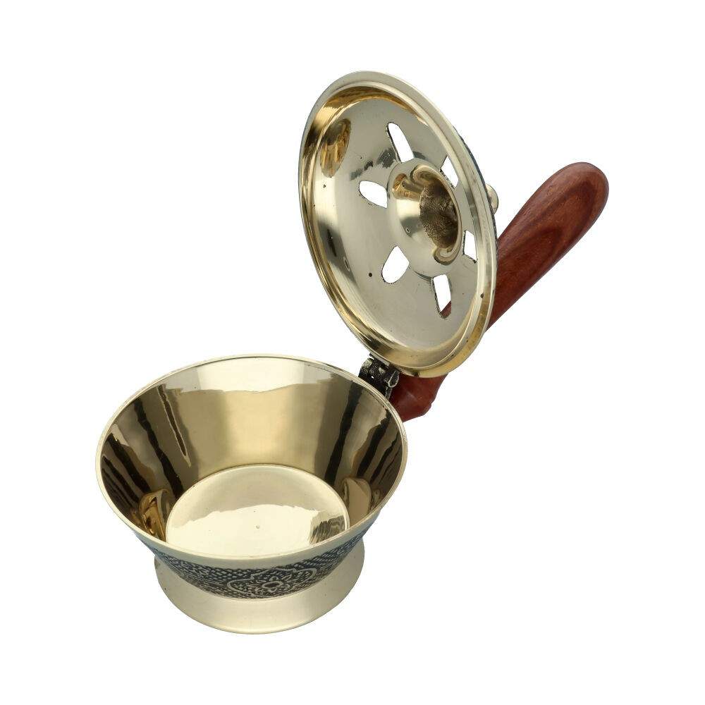 Censer bronze com gravuras pretas e alça de madeira (INB-525/B)