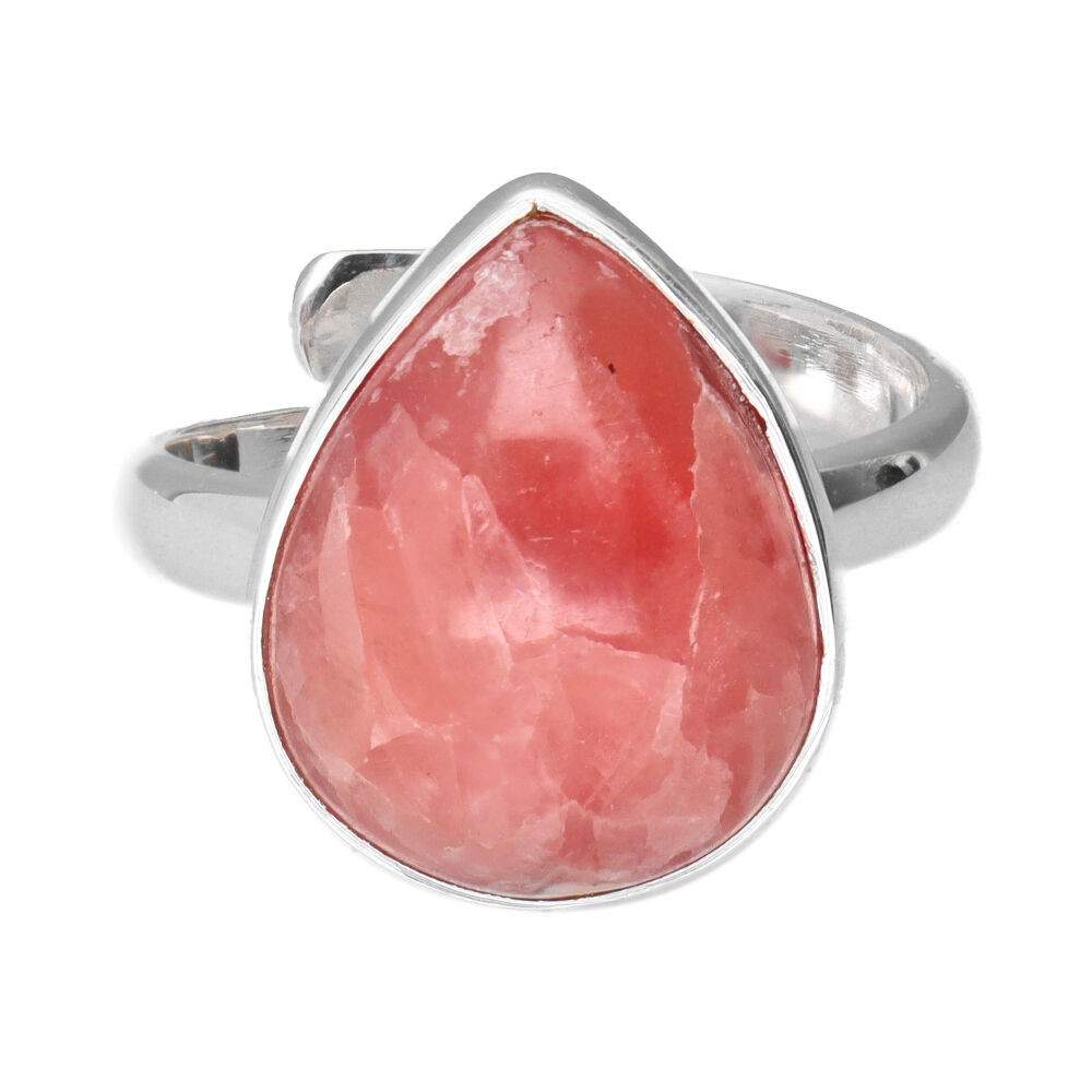 Prata esterlina 925 Ajustável Pequeno anel de gota de rodocrosita aleatória