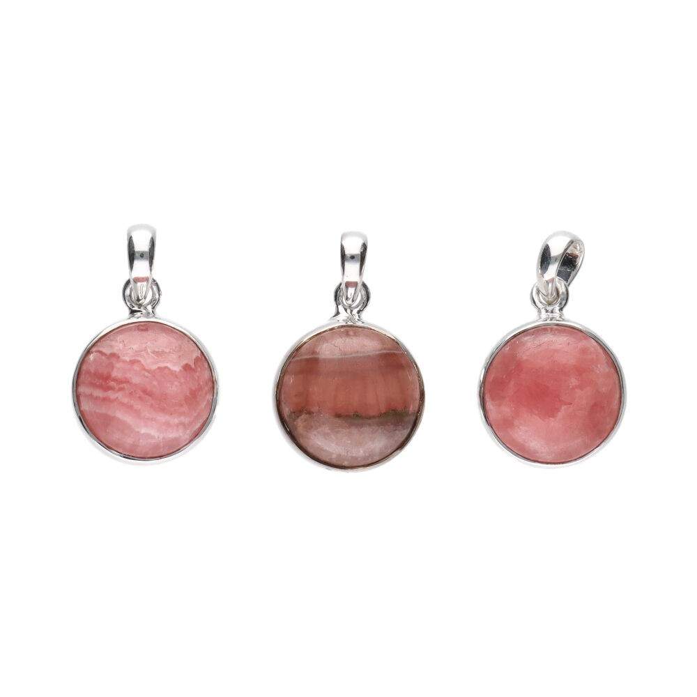 Pingente médio do círculo de rhodochrosite em prata de lei 925