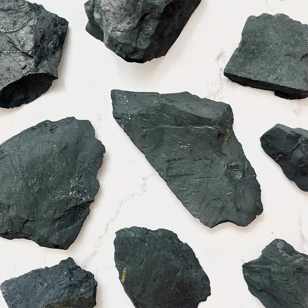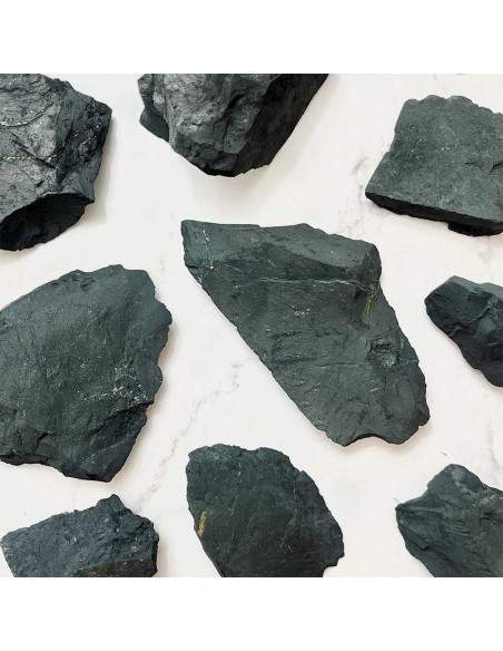 "Tamanho aproximado das peças: 8 x 9cm Peso aproximado: 1kg Número aproximado de peças por embalagem: 2-10 peças Proveniência: Shun'ga, Carélia, Rússia Os produtos de shungite podem manchar. As peças que serão entregues são semelhantes às das fotografias"