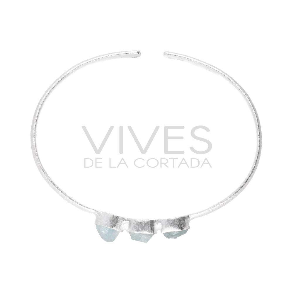 Brazalete de Aguamarina en Bruto en Plata de Ley 925
