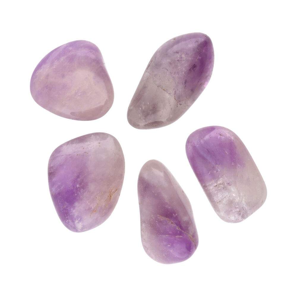 Uno de los rodados de amatista, parece estar pegado con pegamento.