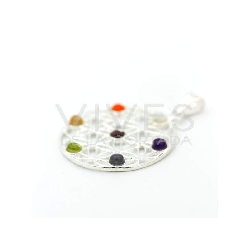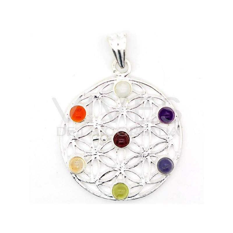 Colgante Flor de la Vida con Minerales Chakras - Baño de Plata